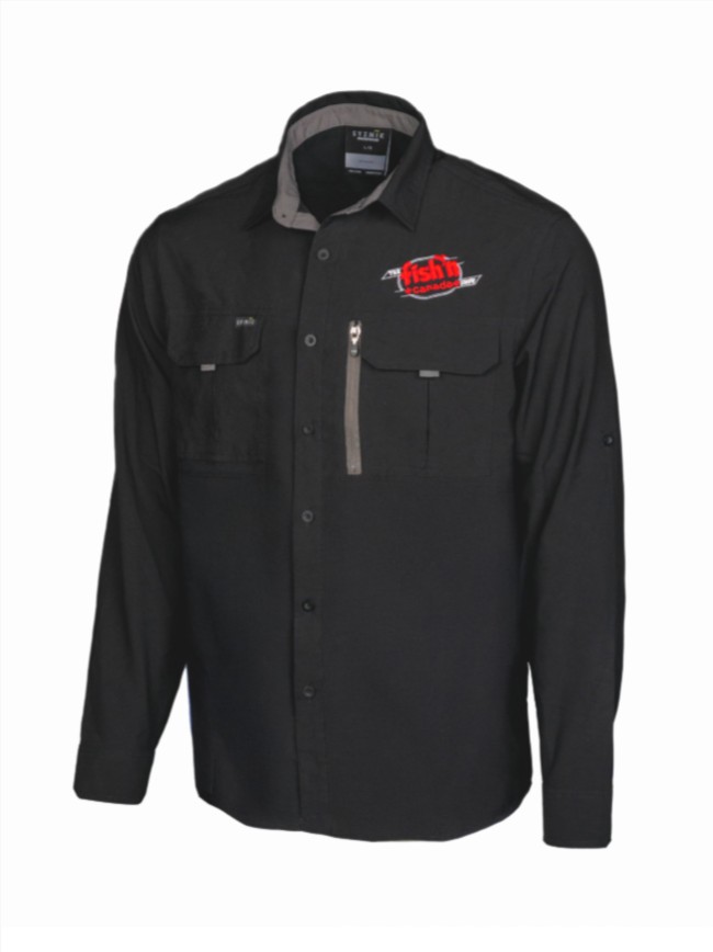 Featuring a structured collar, double chest pockets, and the Fish’n Canada Show logo proudly embroidered on the chest, it’s a sharp look that works on the water or around town.