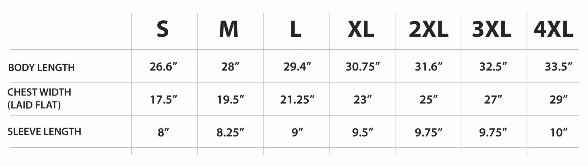 S, M, L, XL, 2XL, 3XL, 4XL